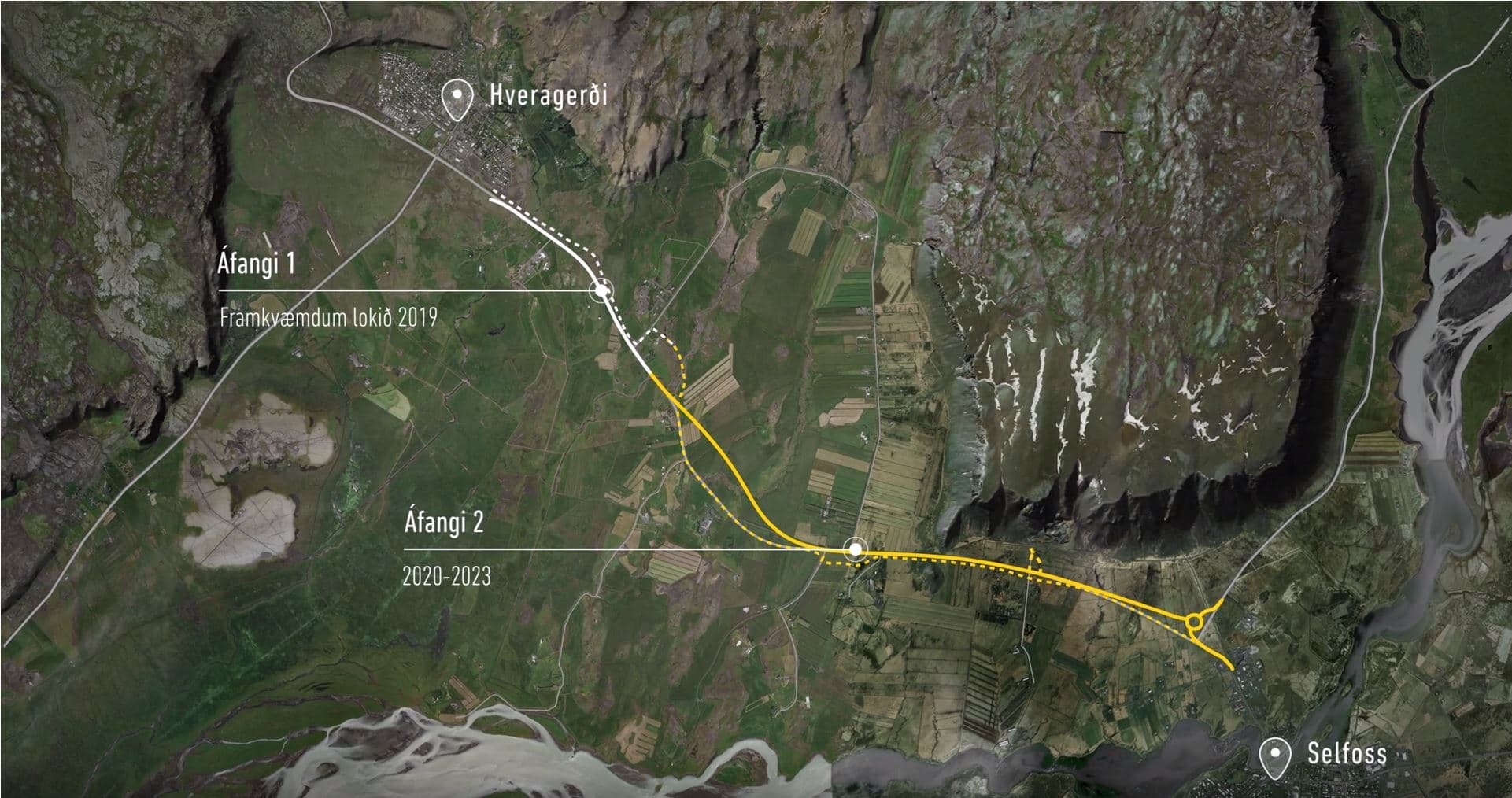 Framkvæmdin felst í nýbygging Hringvegar að hluta og breikkun og endurgerð að hluta, alls um 7,1 km. Gerð verða ný vegamót við Kirkjuferjuveg og Hvammsveg eystri ásamt nýju hringtorgi við Biskupstungnabraut. Lagður verður nýr tæplega 5 km Ölfusvegur með hjólareinum ásamt breytingu á Þórustaðavegi og Biskupstungnabraut.